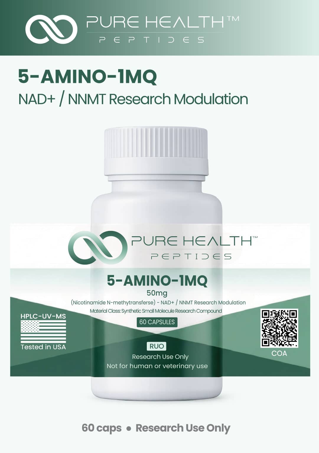 5-Amino-1MQ is a synthetic small-molecule compound belonging to the quinolinium chemical class. This product is supplied in an encapsulated solid format to support controlled handling, storage, and measurement within laboratory research environments.
