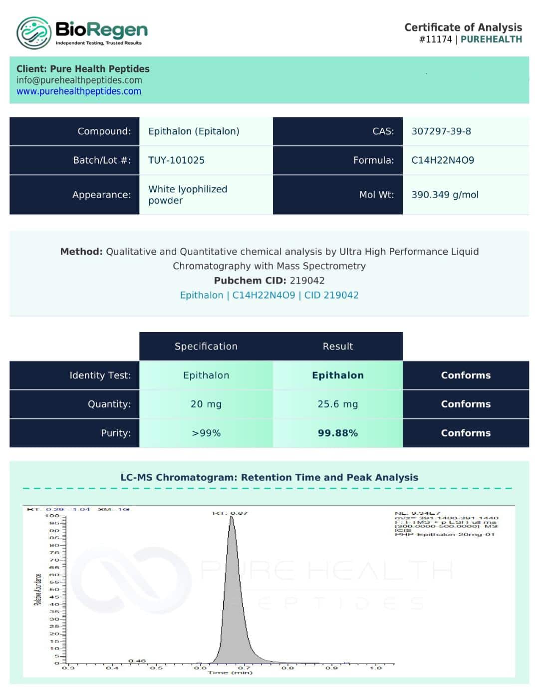 Epithalon isย FOR RESEARCH USE ONLY.ย It is not intended for human or veterinary use. This product has not been evaluated by the FDA. Misuse of this product is strictly prohibited and may violate federal, state, or local laws. By purchasing this product, buyer represents and warrants that it will be used only for in vitro research purposes.