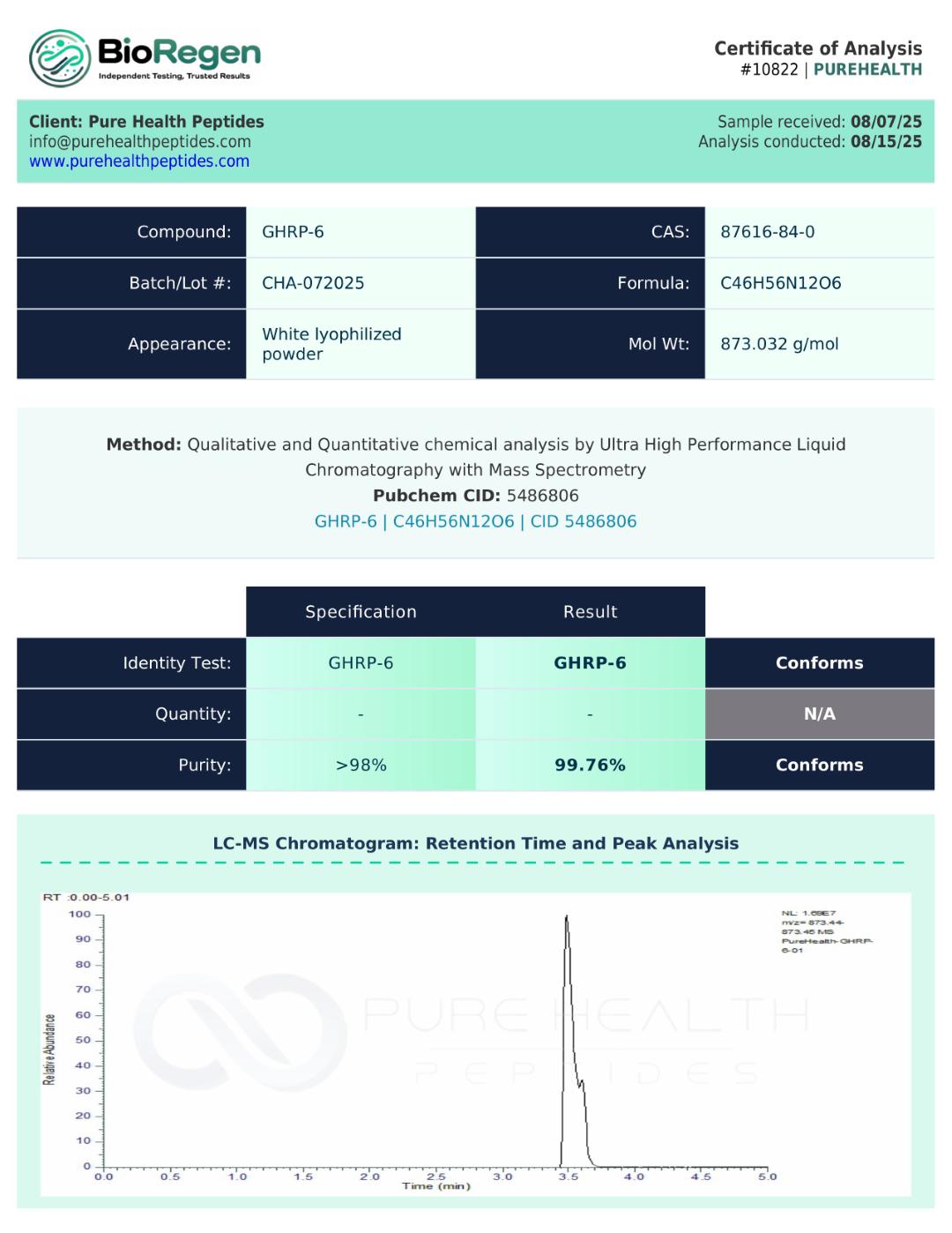 At Pure Health Peptides, transparency is key. Every batch is third-party tested in the USA, with Certificates of Analysis (COAs) readily available for verification, giving researchers confidence in their work.