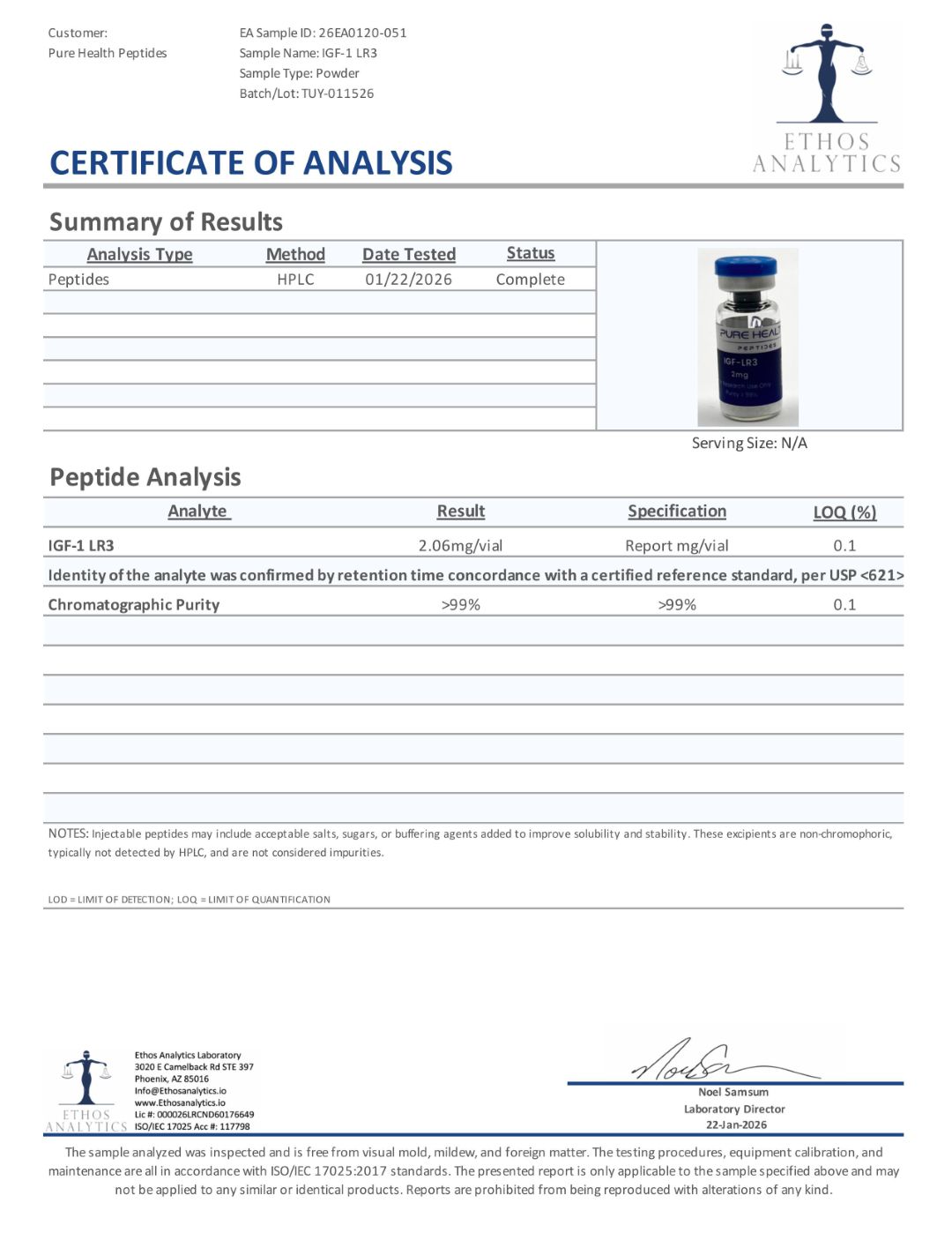 At Pure Health Peptides, transparency is key. Every batch is third-party tested in the USA, with Certificates of Analysis (COAs) readily available for verification, giving researchers confidence in their work.