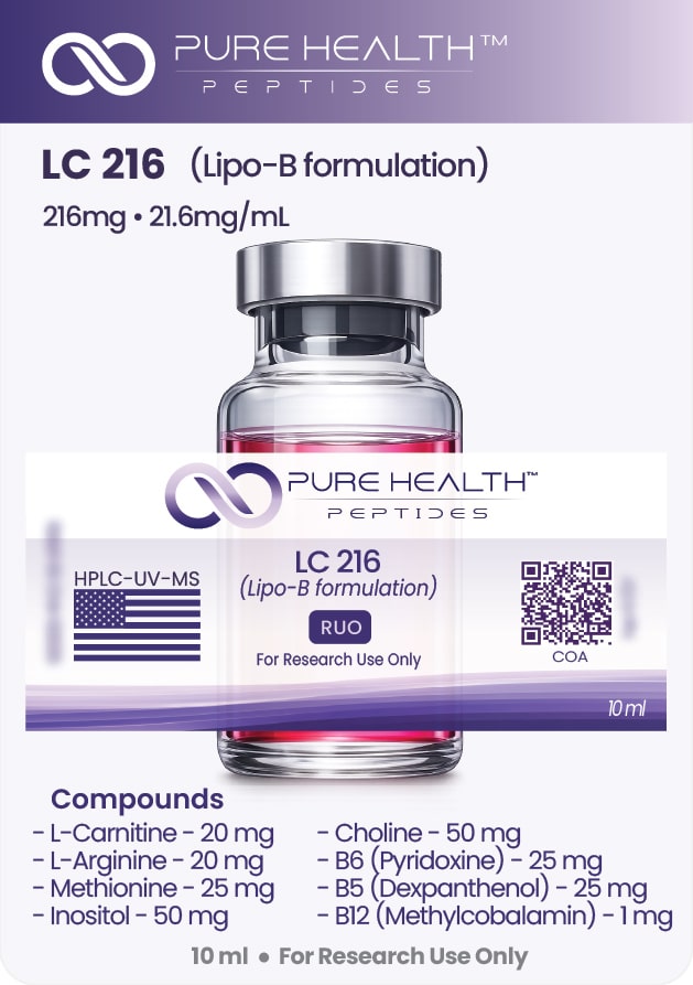 LC 216 is a multi-component liquid research formulation designed for laboratory studies involving amino acids and vitamin-based cofactors. Each compound is included at a defined concentration to support controlled research into formulation behavior, compound compatibility, and biochemical interaction in vitro. LC216 is supplied as an aqueous solution for ease of handling and experimental consistency.