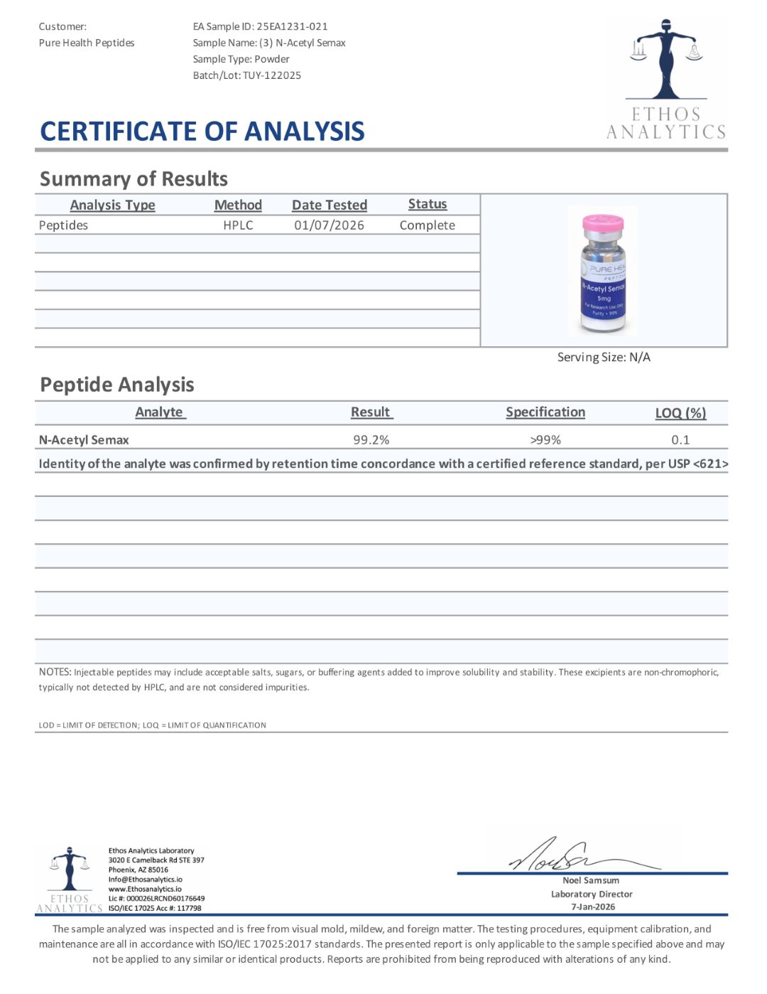 At Pure Health Peptides, transparency is key. Every batch is third-party tested in the USA, with Certificates of Analysis (COAs) readily available for verification, giving researchers confidence in their work.