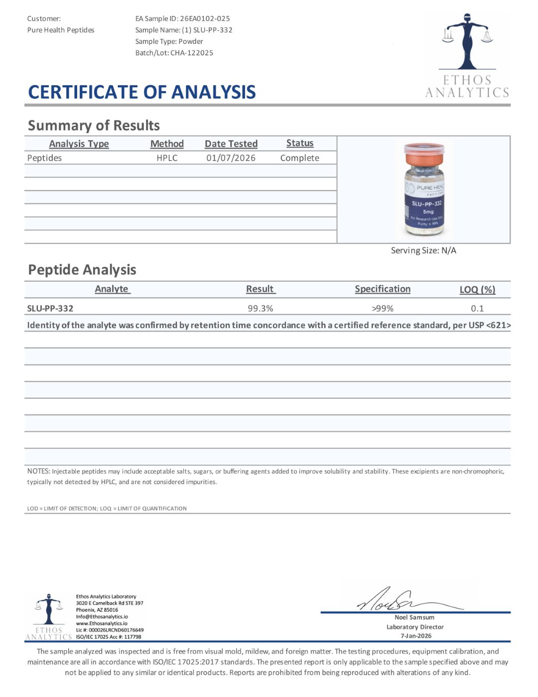 Supplied as a solid research material, SLU-PP-332 is intended exclusively for controlled in-vitro laboratory research conducted by qualified professionals.