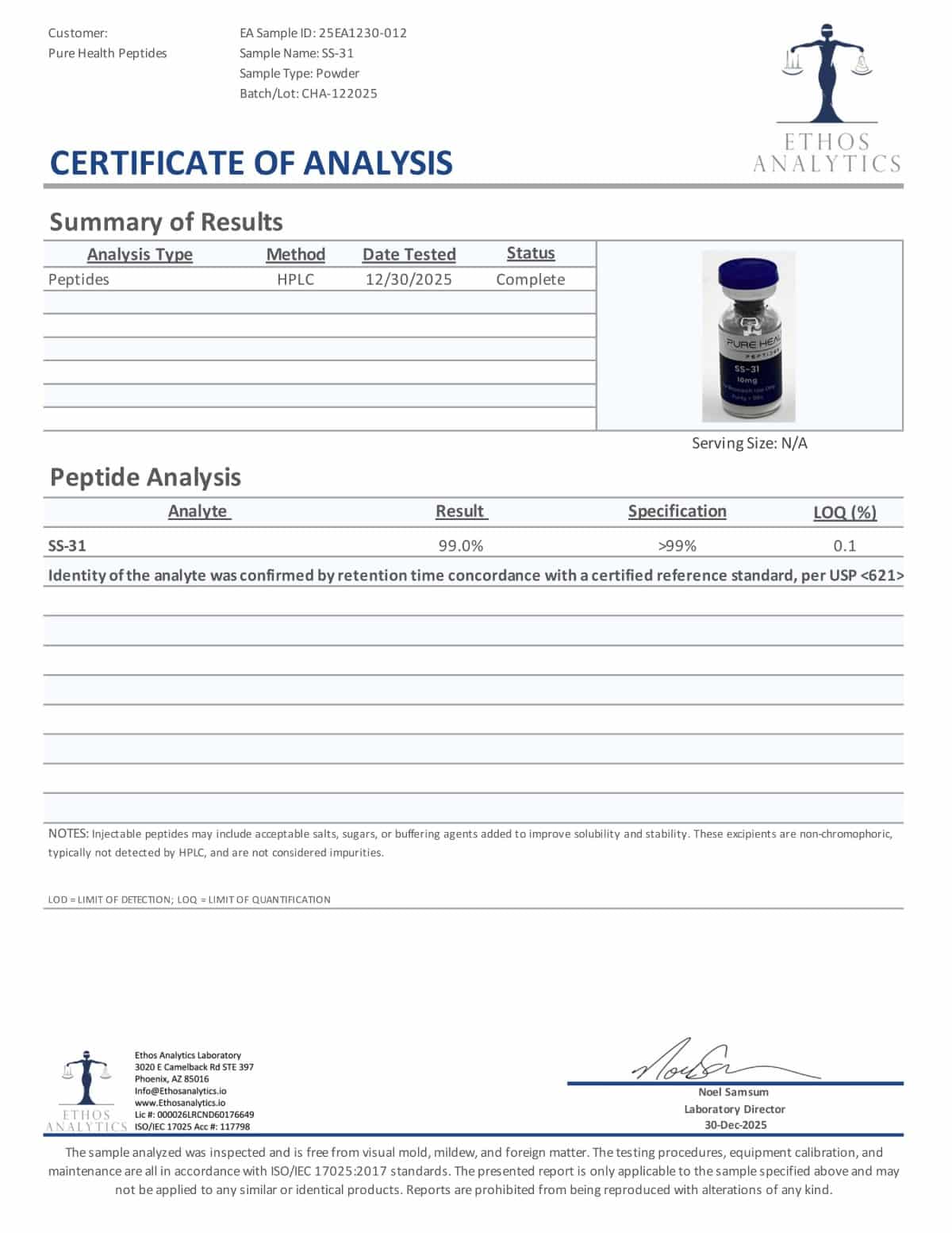 At Pure Health Peptides, transparency is key. Every batch is third-party tested in the USA, with Certificates of Analysis (COAs) readily available for verification, giving researchers confidence in their work.