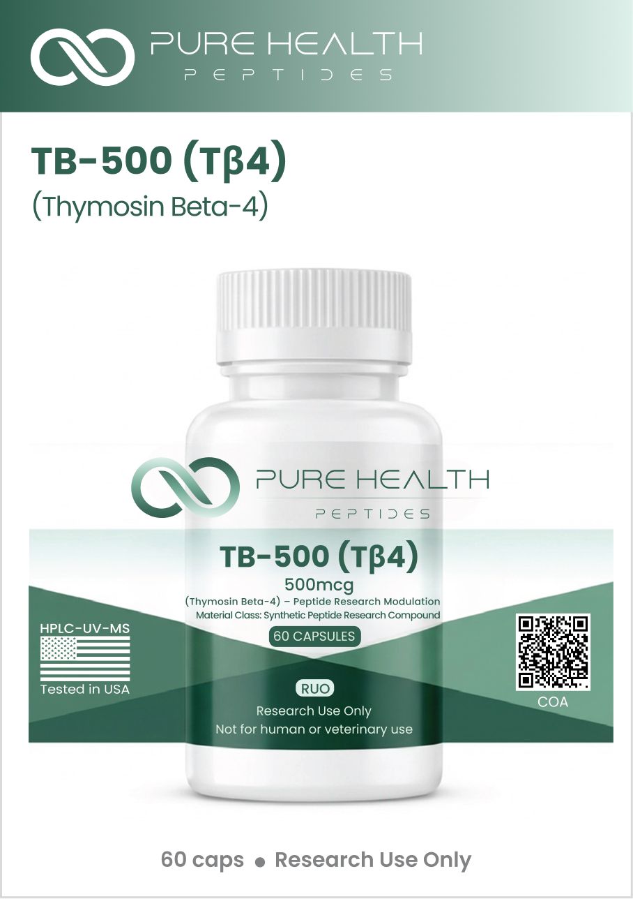 TB-500 is a synthetic peptide corresponding to a fragment of Thymosin Beta-4 (Tβ-4), a naturally occurring actin-binding protein studied extensively in peptide research. This product is supplied in an encapsulated solid format to support controlled storage, handling, and measurement within laboratory research environments.