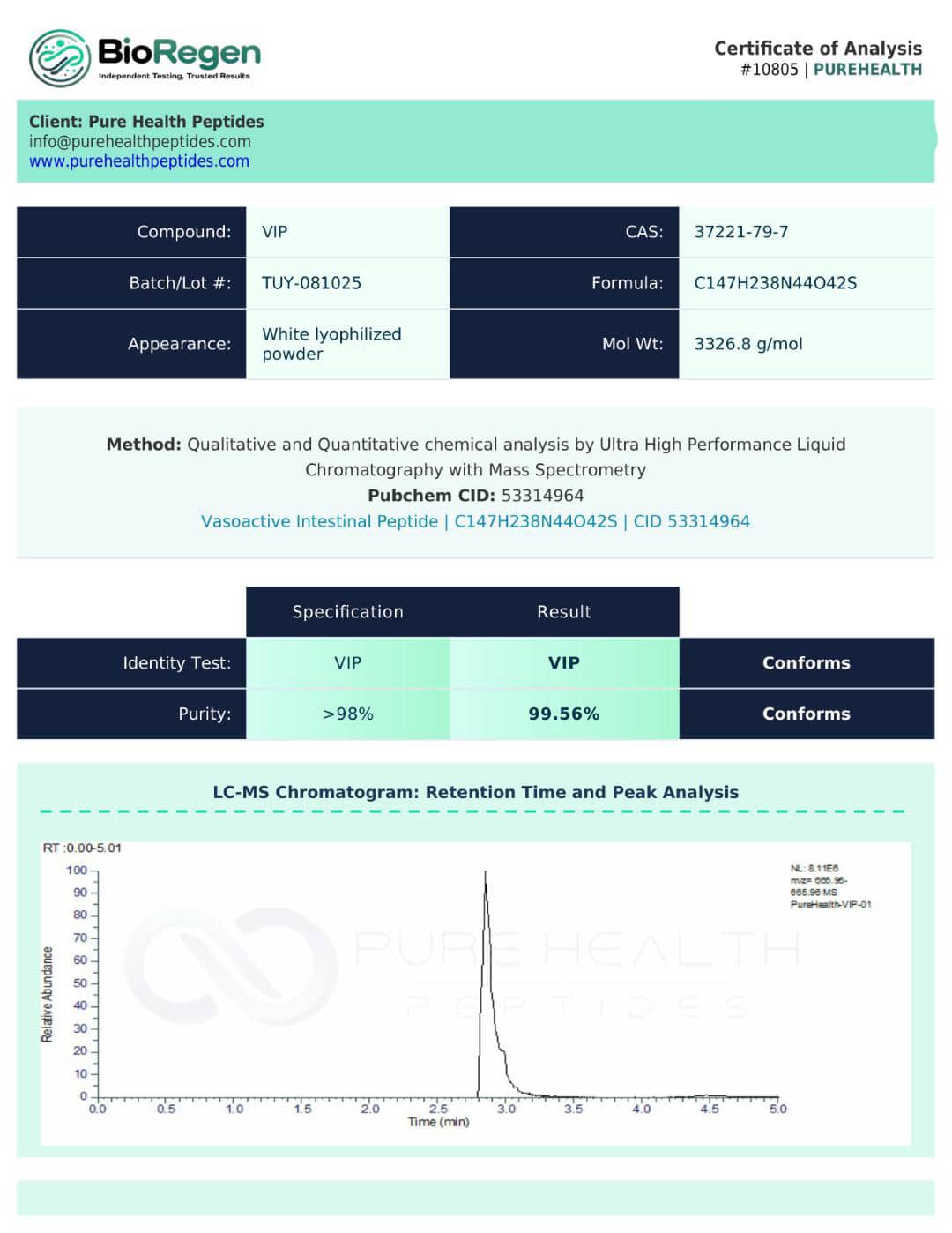 Vasoactive Intestinal Peptide (VIP) is a 28 residue synthetic peptide, part of the glucagon/secretin superfamily. It is commonly used in laboratory research to examine peptide ligand interactions and receptor-based cellular responses. VIP is supplied as a lyophilized powder and is intended exclusively for in vitro use by qualified research professionals.
